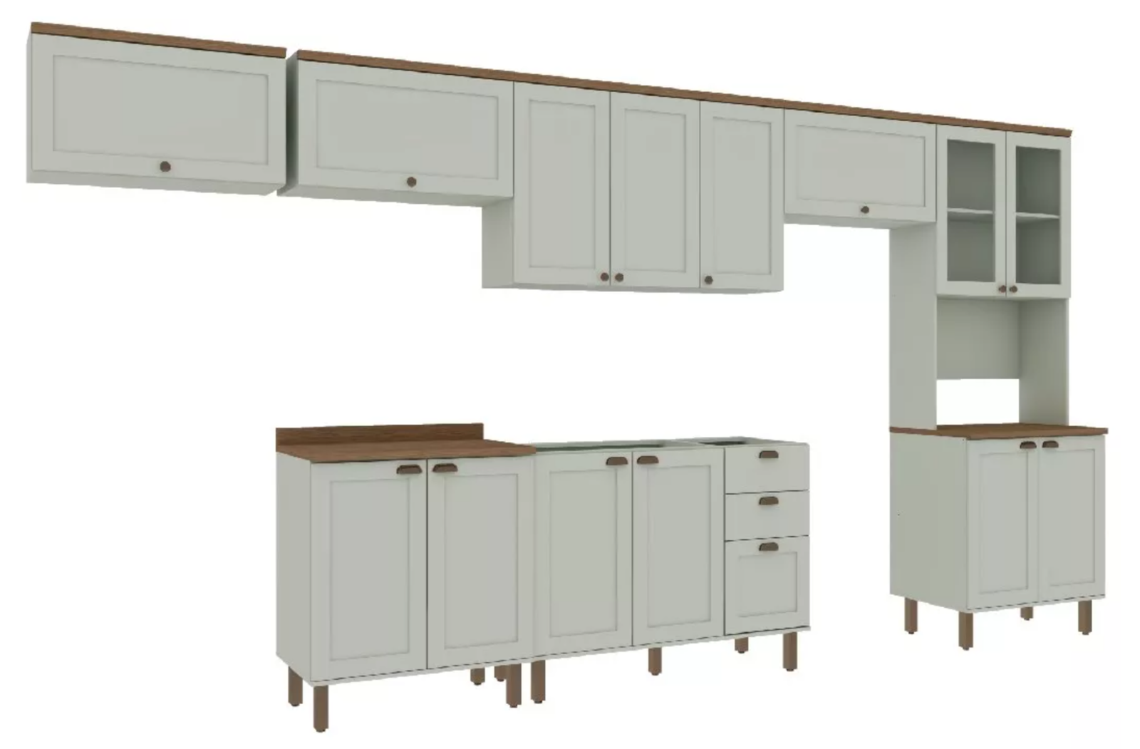 Itens Inclusos : 2 Aéreos de 70 cm, 1 Aéreo de 80 cm, 1 Aéreo de 1,20, 1 Cristaleira Forno, 1 Balcão de 80 cm com tampo e 1 Balcão de 1,20 para pia sem tampo