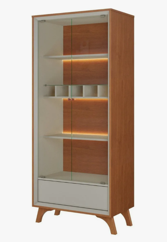 Cristaleira com Adega e Iluminação Led com Pés em Madeira Maciça Laqueado e 1 Gaveta Prime