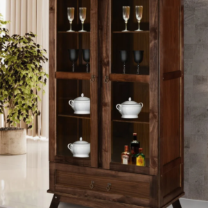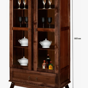 Cristaleira Roma Pinus com HDF Porta de Vidro Retrô