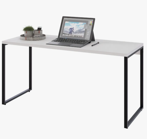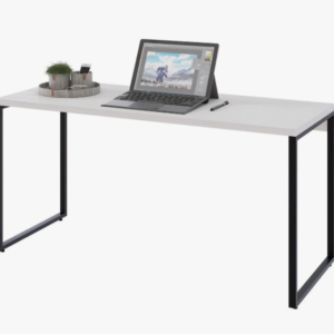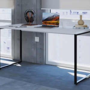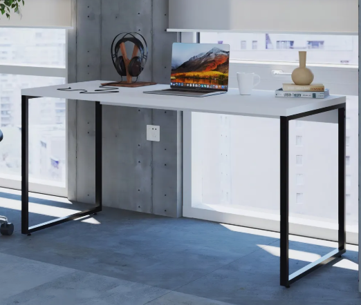 Seu visual industrial combina pés metálicos com pintura eletrostática e tampo em MDP de 30 mm com acabamento acetinado fosco, na cor Branco/Branco Chess. Essa combinação garante resistência, estabilidade e sofisticação ao ambiente.