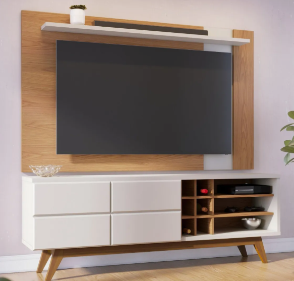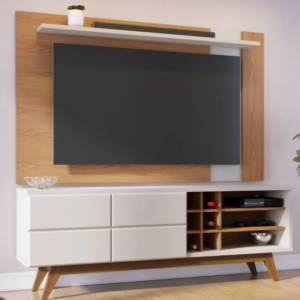 Rack com Painel Extensível Para TV até 70 Polegadas com Adega Pés Madeira Maciça Noronha