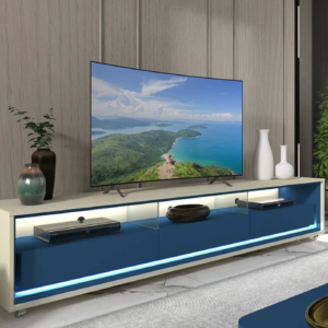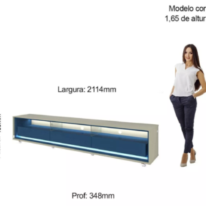 Rack para TV até 85 Polegadas com LED e Rodízios Requinte 211cm Off White/Azul Royal