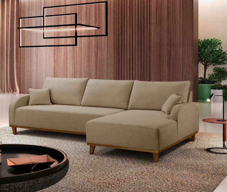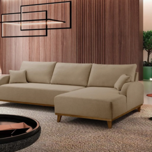 Sofá 3 Lugares com Chaise Lado Direito 250cm em Linho Mercúrio Bege