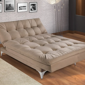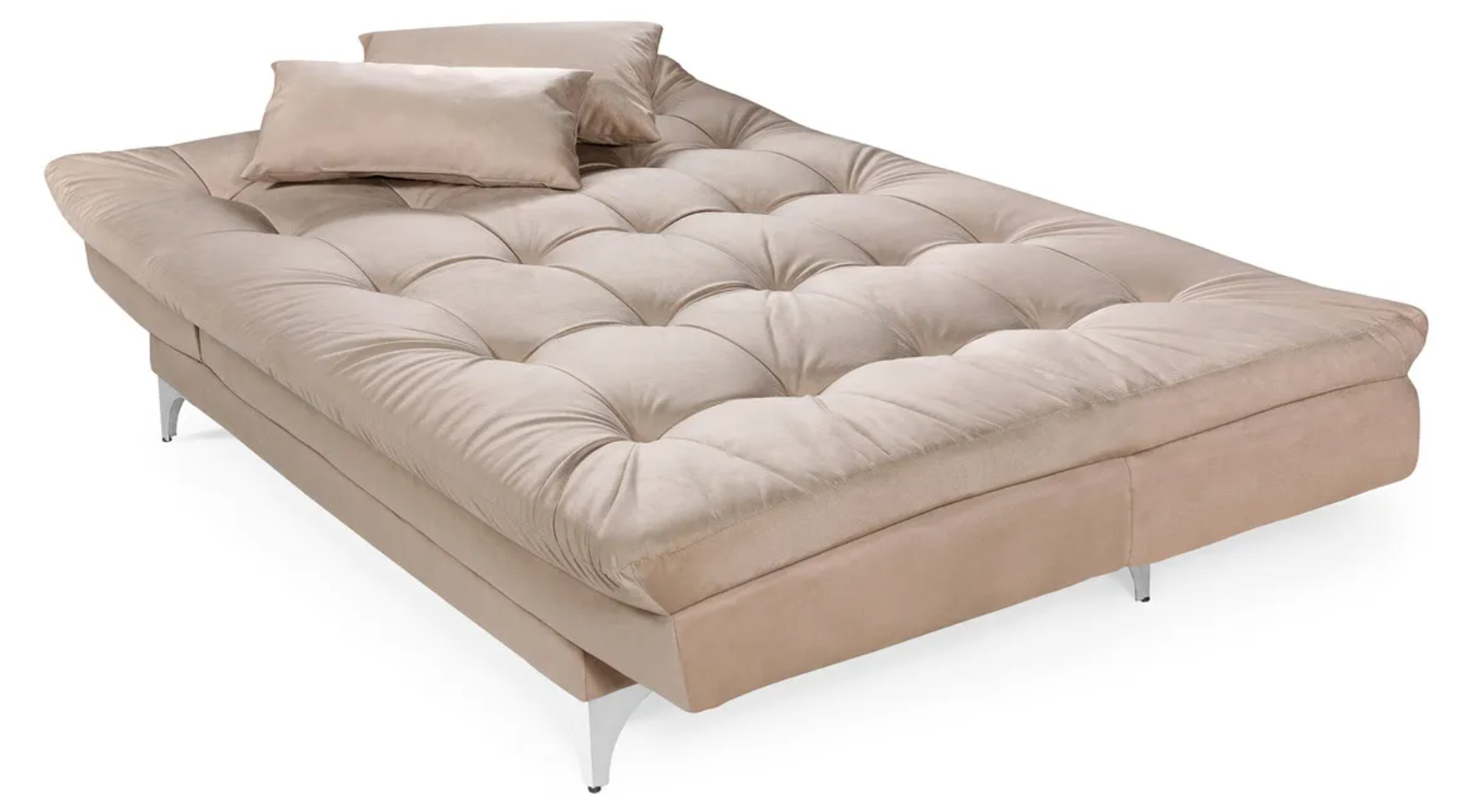 Sofá-cama 3 Lugares Casal Versátil Veludo Liso Areia Império Estofados