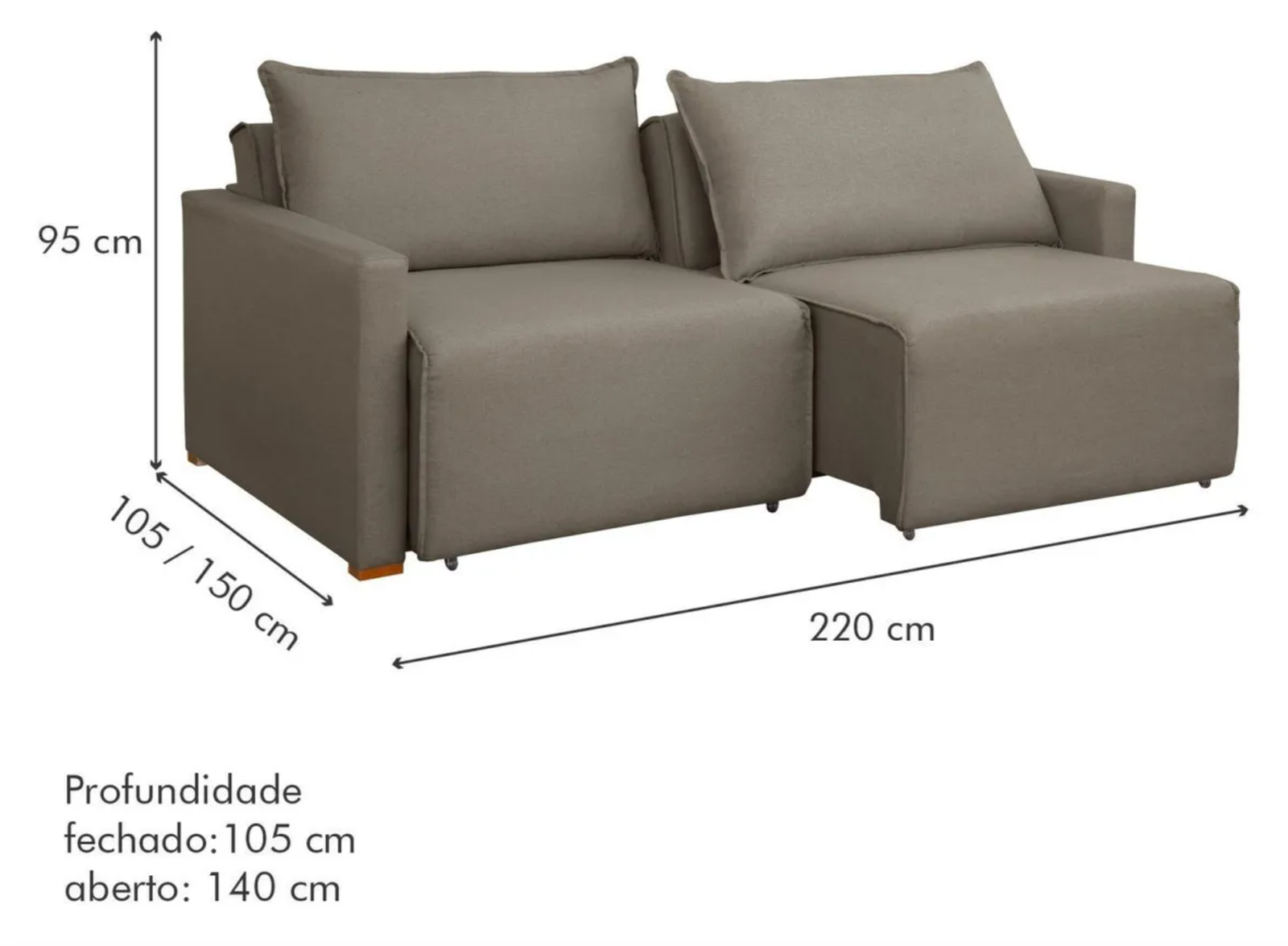 Sofá Cama Retrátil e Reclinável 220cm Júlia Veludo